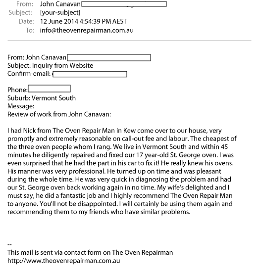 - The Oven Repair Man | Customer Email Review | Oven Repair | Glenhuntly